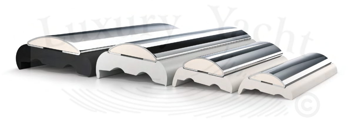 SPHAERA to rewolucyjna listwa odbojowa z profilem ozdobnym ze stali nierdzewnej 316 L. Baza listwy wykonana z PVC z dodatkiem chlorku winylu, dzięki któremu baza staje się wytrzymała i elastyczna, odporna na wstrząsy, jednocześnie lekka i estetyczna. Patent Tessilmare.