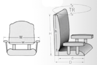 Wykonany z wytrzymałej wodoodpornej tkaniny morskiej, dostępny w kolorach ciemny granat lub grafitowo-szary. Zawias przedni przekształca siedzenie w podparcie pod uda przy pozycji stojącej. Standardowy układ 4 otworów.