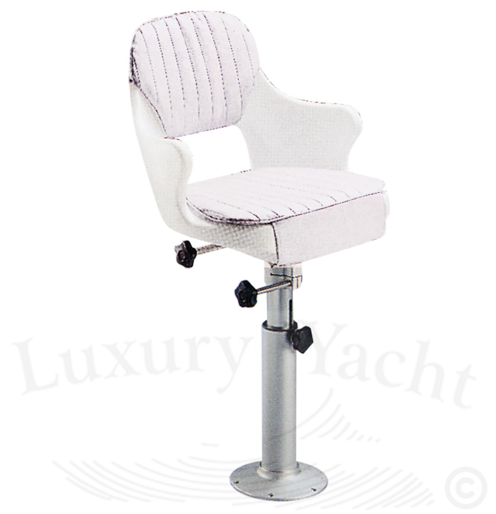 Do pontonu, łodzi wędkarskiej lub motorówki wykonany z polietylenu, odporny na wstrząsy. W zestawie z cokołem z anodowanego aluminium, przesuwną płytą siedziska i białą poduszką.