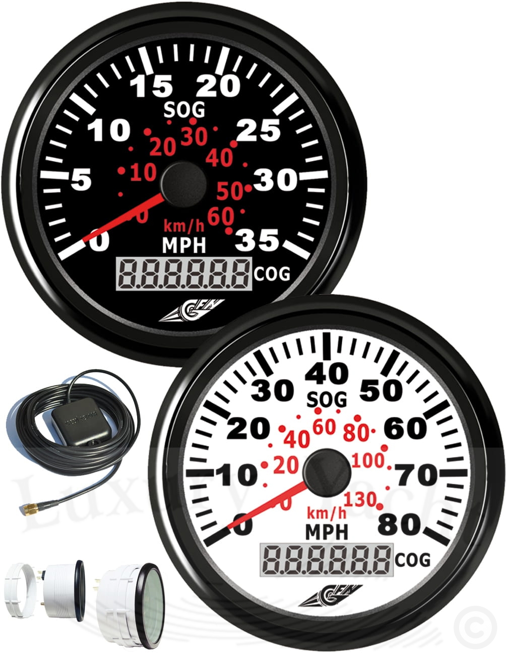 Wpuszczany prędkościomierz ze zintegrowanym GPS, wodoszczelność IP67, wyposażony w podświetlenie. Precyzyjny instrument który wykracza poza funkcję odczytu prędkości dzięki GPS ze zintegrowaną anteną, pokazuje również kierunek dziobu (COG) podczas nawigacji.