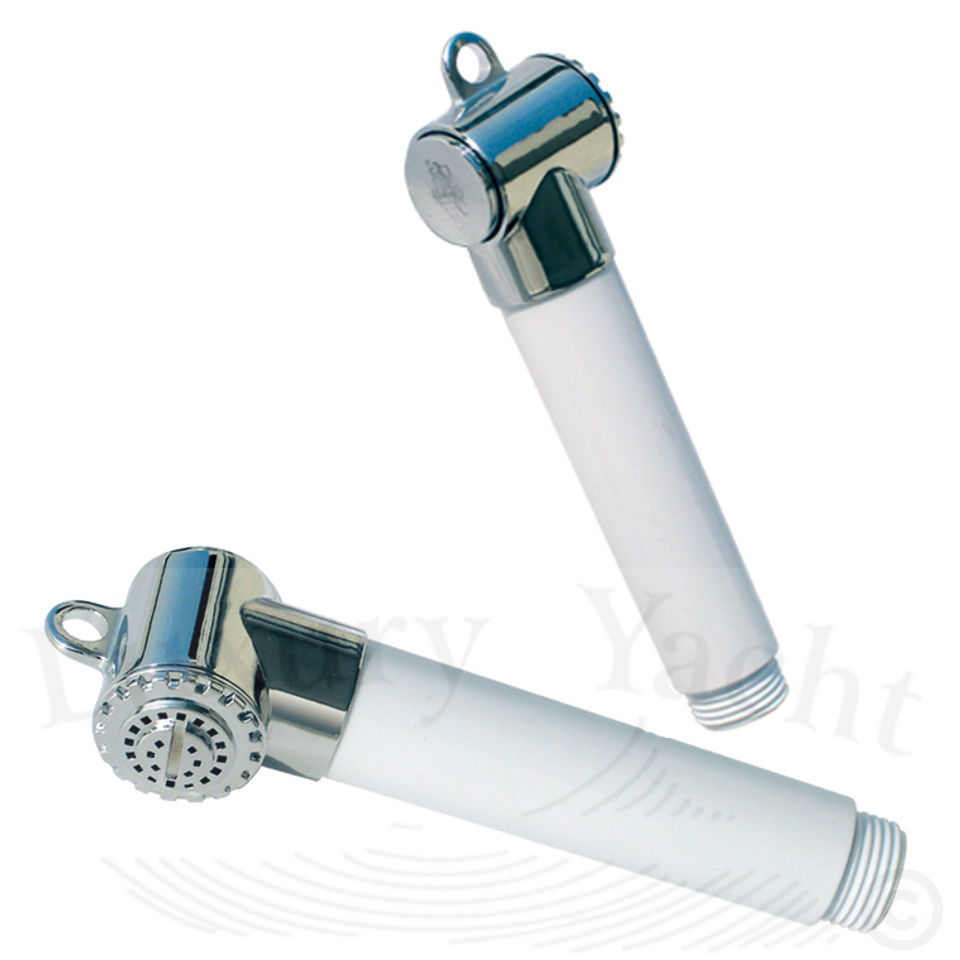 Słuchawka prysznicowa z przyciskiem wykonana z materiału odpornego na wstrząsy.